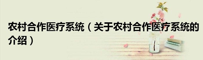 大家好,今天小乐来为大家解答以上的问题。农村合作医疗系统,关于农村合作医疗系统的介绍很多人还不知道,现在让我们一起来看看吧!