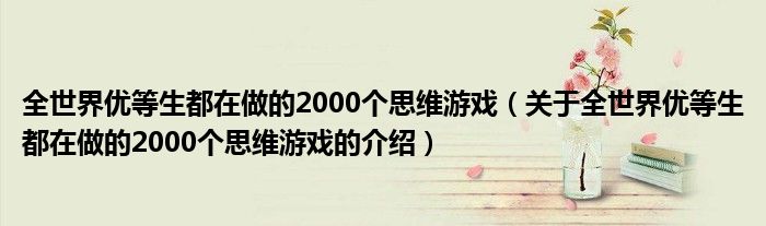 大家好,今天小乐来为大家解答以上的问题。全世界优等生都在做的2000个思维游戏,关于全世界优等生都在做的2000个思维游戏的介绍很多人还不知道,现在让我们一起来看看吧!