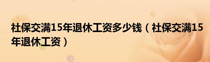 大家好,小晋来为大家解答以下问题,关于社保交满15年退休工资多少钱,社保交满15年退休工资很多人还不知道,今天让我们一起来看看吧!
