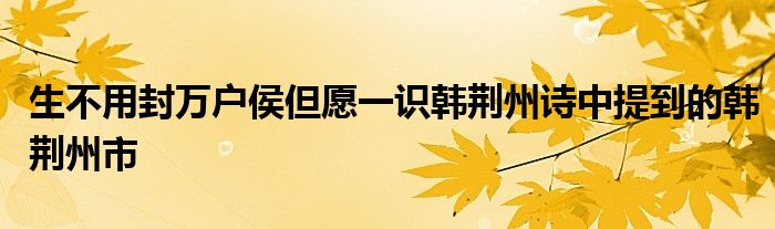 关于生不用封万户侯但愿一识韩荆州诗中提到的韩荆州市这个很多人还不知道,今天菲菲来为大家解答以上的问题,现在让我们一起来看看吧!