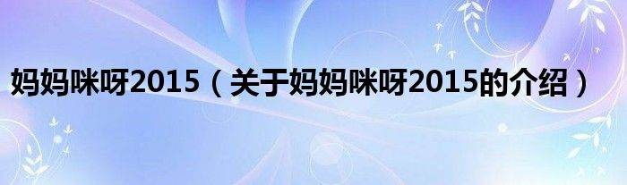 大家好,今天小乐来为大家解答以上的问题。妈妈咪呀2015,关于妈妈咪呀2015的介绍很多人还不知道,现在让我们一起来看看吧!