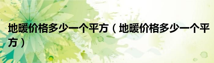 地暖价格多少一个平方,地暖价格多少一个平方很多人还不知道,乐乐来为大家解答以上问题,现在让我们一起来看看吧!