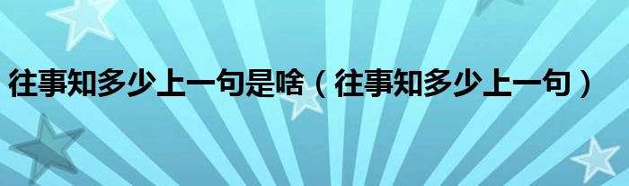 往事知多少上一句是啥(往事知多少上一句)