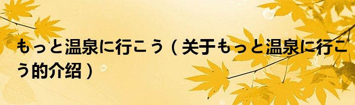 もっと温泉に行こう(关于もっと温泉に行こう的介绍)