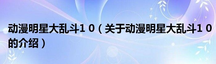 动漫明星大乱斗10(关于动漫明星大乱斗10的介绍)