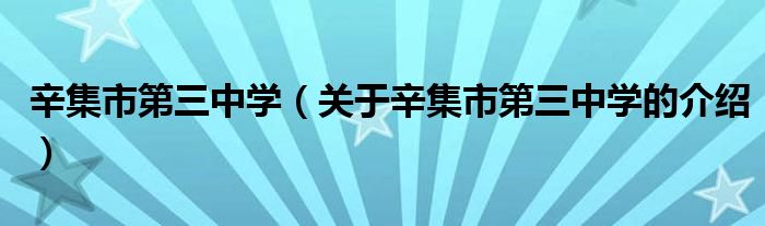 大家好,小都来为大家解答以上的问题。辛集市第三中学,关于辛集市第三中学的介绍很多人还不知道,现在让我们一起来看看吧!