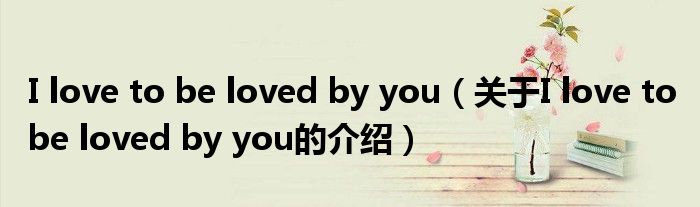 大家好,小都来为大家解答以上的问题。I love to be loved by you,关于I love to be loved by you的介绍很多人还不知道,现在让我们一起来看看吧!