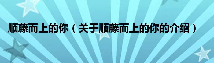 大家好,小都来为大家解答以上的问题。顺藤而上的你,关于顺藤而上的你的介绍很多人还不知道,现在让我们一起来看看吧!