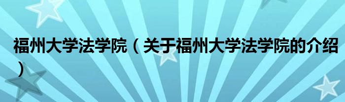 大家好,小都来为大家解答以上的问题。福州大学法学院,关于福州大学法学院的介绍很多人还不知道,现在让我们一起来看看吧!