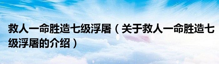 大家好,小都来为大家解答以上的问题。救人一命胜造七级浮屠,关于救人一命胜造七级浮屠的介绍很多人还不知道,现在让我们一起来看看吧!