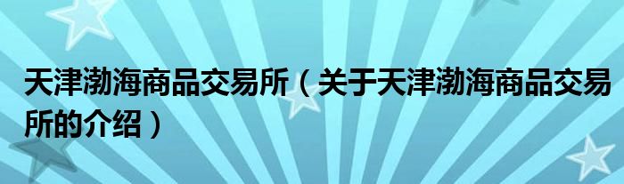 大家好,小都来为大家解答以上的问题。天津渤海商品交易所,关于天津渤海商品交易所的介绍很多人还不知道,现在让我们一起来看看吧!