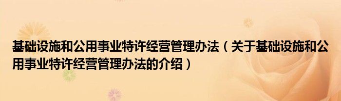 大家好,小都来为大家解答以上的问题。基础设施和公用事业特许经营管理办法,关于基础设施和公用事业特许经营管理办法的介绍很多人还不知道,现在让我们一起来看看吧!
