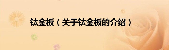 大家好,小都来为大家解答以上的问题。钛金板,关于钛金板的介绍很多人还不知道,现在让我们一起来看看吧!