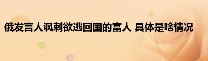 大家好.我是互联百科的羽儿,现在为大家解决以上俄发言人讽刺欲逃回国的富人 具体是啥情况的问题.