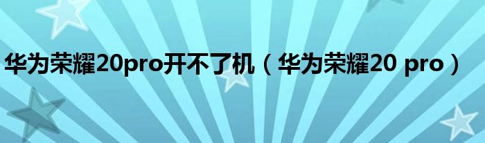 大家好,雨雨来为大家解答以上问题,华为荣耀20pro开不了机,华为荣耀20 pro很多人还不知道,现在让我们一起来看看吧!