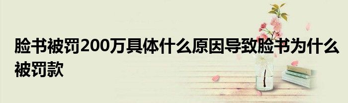 脸书被罚200万具体什么原因导致脸书为什么被罚款