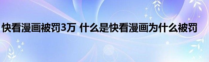 快看漫画被罚3万 什么是快看漫画为什么被罚