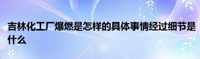 大家好.我是互联百科的羽儿,现在为大家解决以上吉林化工厂爆燃是怎样的具体事情经过细节是什么的问题.