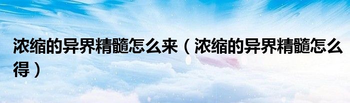 大家好,雨雨来为大家解答以上问题,浓缩的异界精髓怎么来,浓缩的异界精髓怎么得很多人还不知道,现在让我们一起来看看吧!
