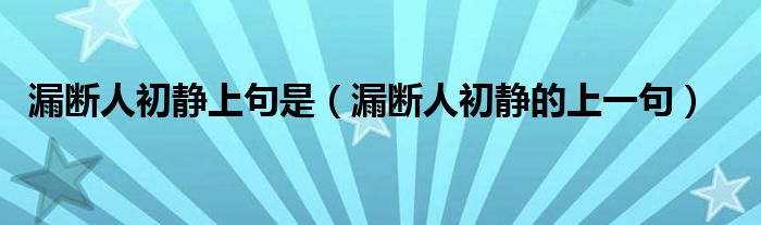 大家好,小晋来为大家解答以下问题,关于漏断人初静上句是,漏断人初静的上一句很多人还不知道,今天让我们一起来看看吧!