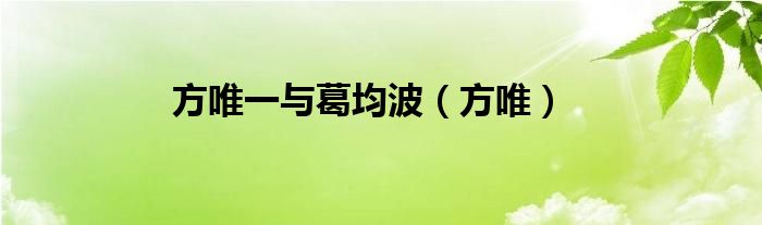 大家好,雨雨来为大家解答以上问题,方唯一与葛均波,方唯很多人还不知道,现在让我们一起来看看吧!