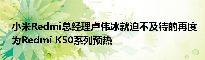 春节后开工首日,Redmi总经理卢伟冰就迫不及待的再度为Redmi K50系列预热,预计首款机型Redmi K50电竞版会在2月15日前后发布,K50/K50 Pro/K50 Pro+在3月份和我们见面。