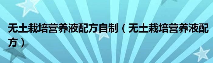 2、也可以用以下配方自己配制营养液。