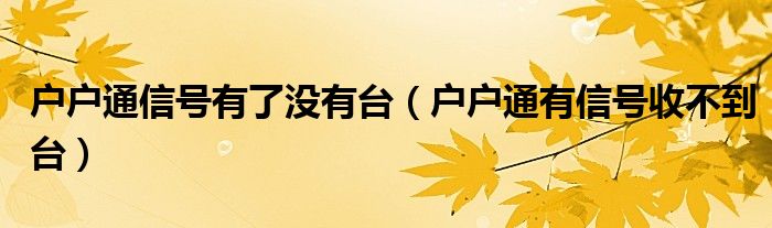 大家好,小晋来为大家解答以下问题,关于户户通信号有了没有台,户户通有信号收不到台很多人还不知道,今天让我们一起来看看吧!