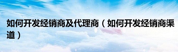 关于如何开发经销商及代理商,如何开发经销商渠道这个很多人还不知道,今天菲菲来为大家解答以上的问题,现在让我们一起来看看吧!