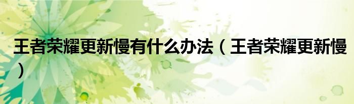 关于王者荣耀更新慢有什么办法,王者荣耀更新慢这个很多人还不知道,今天菲菲来为大家解答以上的问题,现在让我们一起来看看吧!
