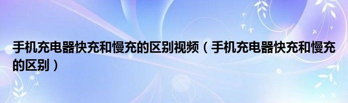 关于手机充电器快充和慢充的区别视频,手机充电器快充和慢充的区别这个很多人还不知道,今天菲菲来为大家解答以上的问题,现在让我们一起来看看吧!