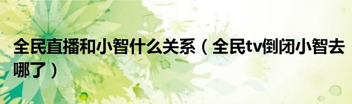 大家好,小晋来为大家解答以下问题,关于全民直播和小智什么关系,全民tv倒闭小智去哪了很多人还不知道,今天让我们一起来看看吧!