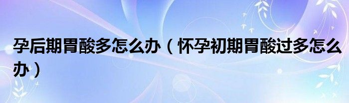 孕后期胃酸多怎么办(怀孕初期胃酸过多怎么办)