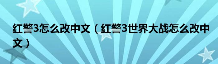 关于红警3怎么改中文,红警3世界大战怎么改中文这个很多人还不知道,今天菲菲来为大家解答以上的问题,现在让我们一起来看看吧!