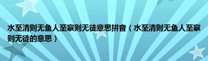 关于水至清则无鱼人至察则无徒意思拼音,水至清则无鱼人至察则无徒的意思这个很多人还不知道,今天菲菲来为大家解答以上的问题,现在让我们一起来看看吧!