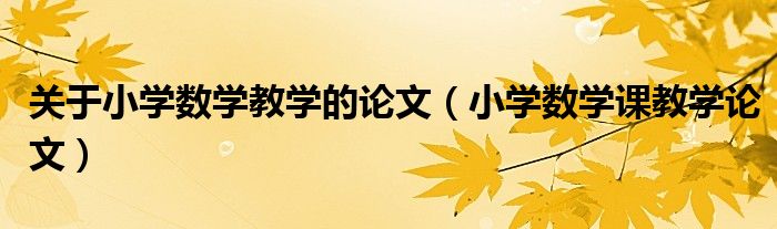 关于关于小学数学教学的论文,小学数学课教学论文这个很多人还不知道,今天菲菲来为大家解答以上的问题,现在让我们一起来看看吧!