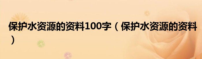 关于保护水资源的资料100字,保护水资源的资料这个很多人还不知道,今天菲菲来为大家解答以上的问题,现在让我们一起来看看吧!