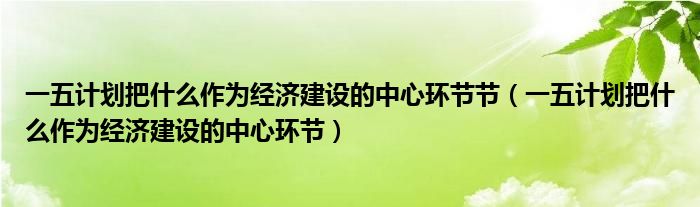 关于一五计划把什么作为经济建设的中心环节节,一五计划把什么作为经济建设的中心环节这个很多人还不知道,今天菲菲来为大家解答以上的问题,现在让我们一起来看看吧!