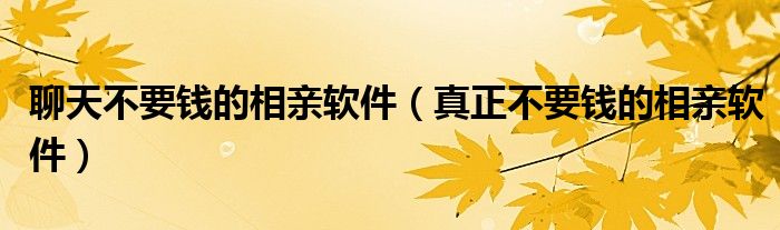 小鱼来为大家解答以下问题,聊天不要钱的相亲软件,真正不要钱的相亲软件很多人还不知道,现在让我们一起来看看吧!