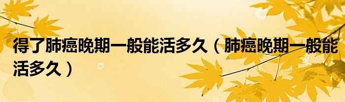 大家好,乐天来为大家解答以下的问题,得了肺癌晚期一般能活多久,肺癌晚期一般能活多久很多人还不知道,现在让我们一起来看看吧!