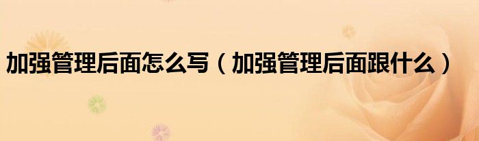 关于加强管理后面怎么写,加强管理后面跟什么这个很多人还不知道,今天菲菲来为大家解答以上的问题,现在让我们一起来看看吧!