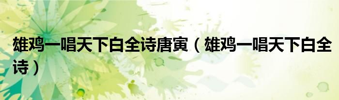 雄鸡一唱天下白全诗唐寅(雄鸡一唱天下白全诗)