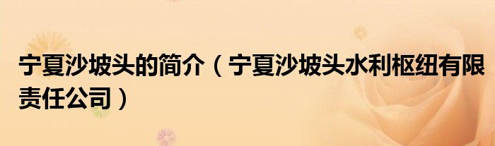 宁夏沙坡头的简介(宁夏沙坡头水利枢纽有限责任公司)