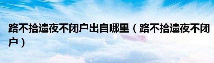 关于路不拾遗夜不闭户出自哪里,路不拾遗夜不闭户这个很多人还不知道,今天菲菲来为大家解答以上的问题,现在让我们一起来看看吧!
