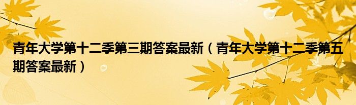 大家好,小小来为大家解答以下问题,青年大学第十二季第三期答案最新,青年大学第十二季第五期答案最新很多朋友还不知道,现在让我们一起来看看吧!