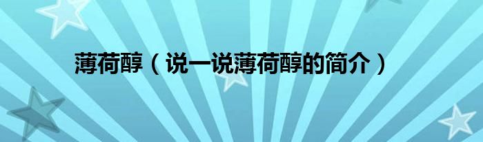 夏弥来为大家解答以下的问题,薄荷醇,说一说薄荷醇的简介,现在让我们一起来看看吧!