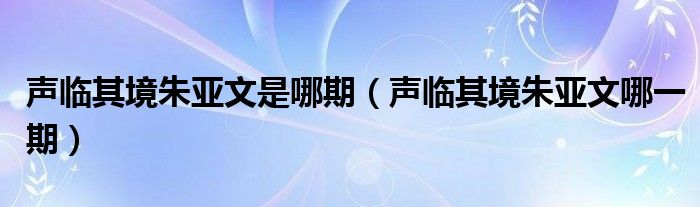 大家好,小晋来为大家解答以下问题,关于声临其境朱亚文是哪期,声临其境朱亚文哪一期很多人还不知道,今天让我们一起来看看吧!