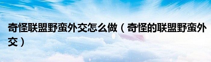 奇怪联盟野蛮外交怎么做(奇怪的联盟野蛮外交)