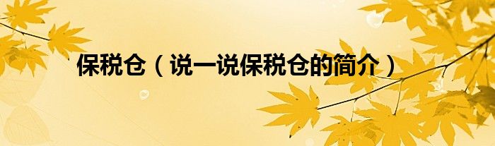 保税仓(说一说保税仓的简介)