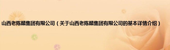 本文关于山西老陈醋集团有限公司的基本详情介绍就讲解完毕,希望对大家有所帮助。
